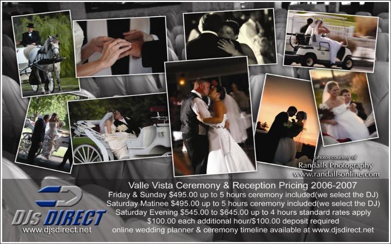 Dj Rental System | Valle Vista Weddings | DJ Satisfaction Surveys | Indiana Wedding Professionals | Our DJs | Banquet Halls | Cancellation Policy |