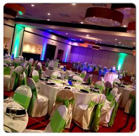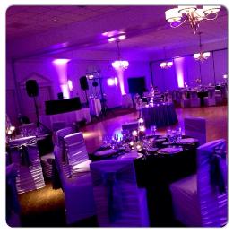 Accent lighting also known as "uplighting" is a technique used in lighting design to enhance the atmosphere of any given space. It involves placing lighting fixtures( several colors to choose from) on the ground and focusing them upward. This method of lighting is one of the easiest ways to dress up an event space. This package includes 8-12 uplighting cans. $300 total includes up to 14 lights (depending on space) |